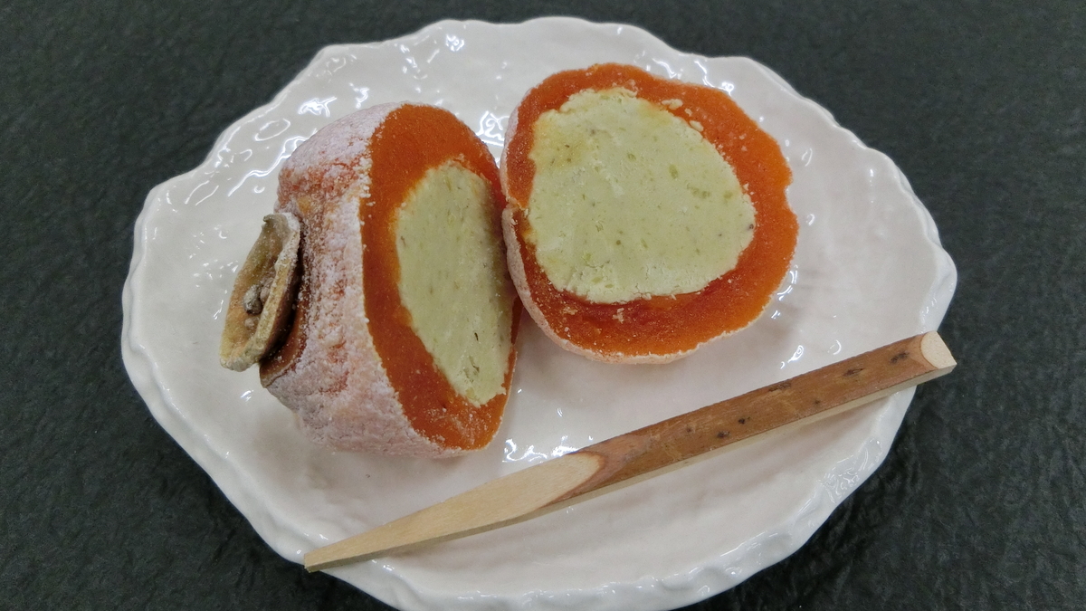 柿いっぱいに詰め込み、ひとつひとつ心を込めて丁寧に作り上げたお菓子です。